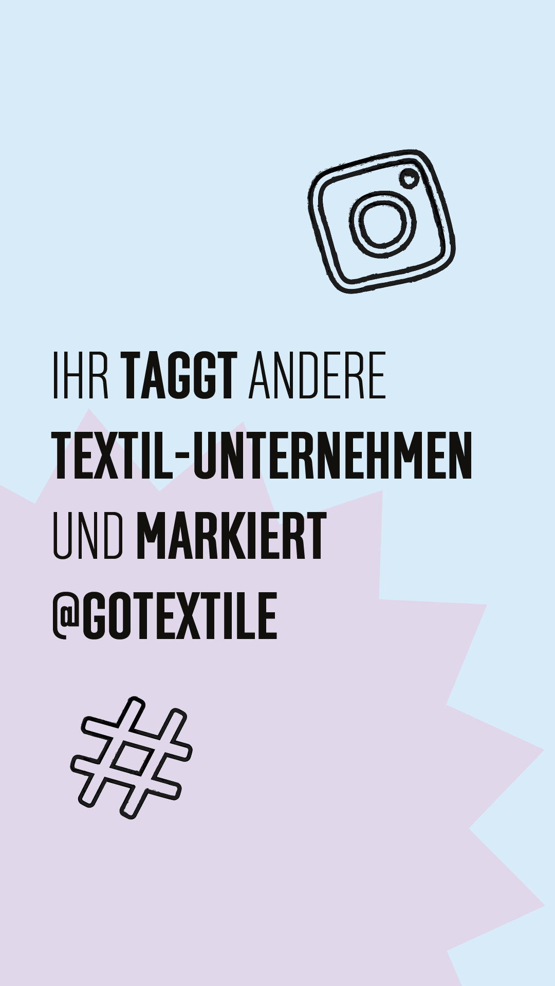 - Beim Hochladen andere Textilunternehmen taggen und @gotextile_runyourfuture markieren