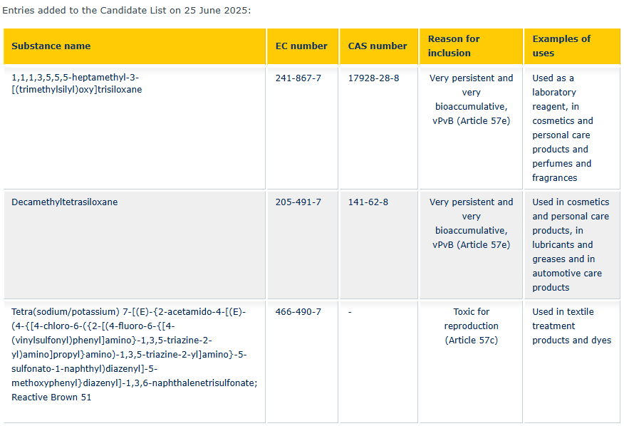 Damit enthält die SVHC-Liste aktuell 250 Stoffe.