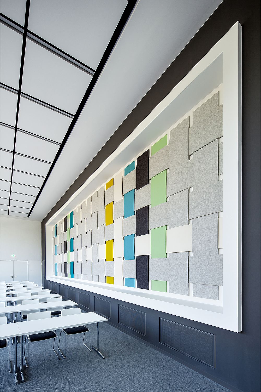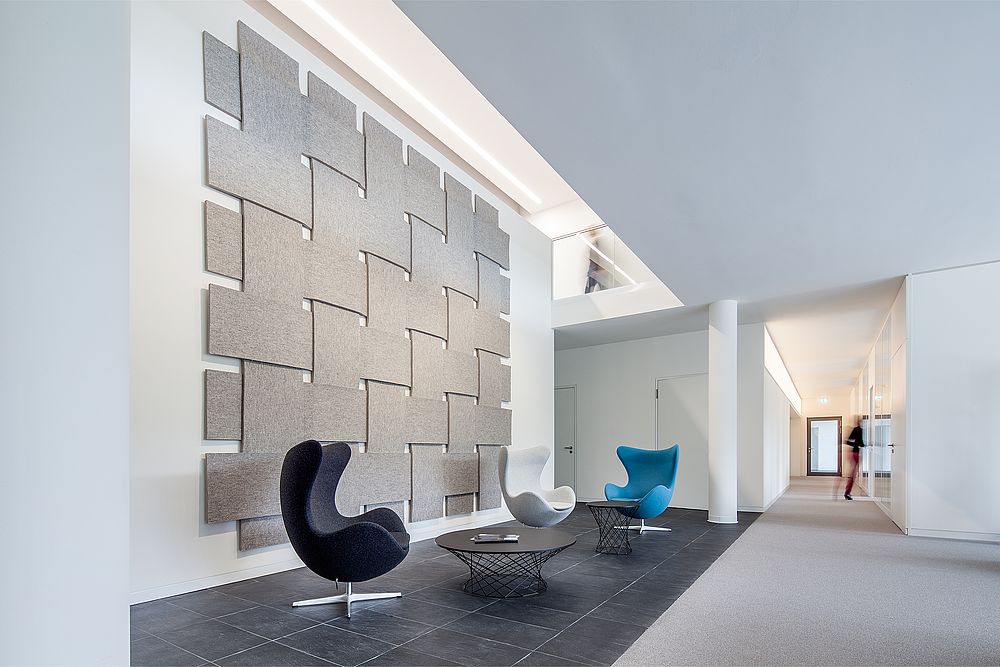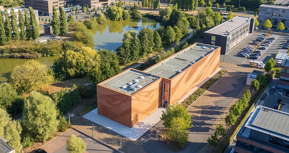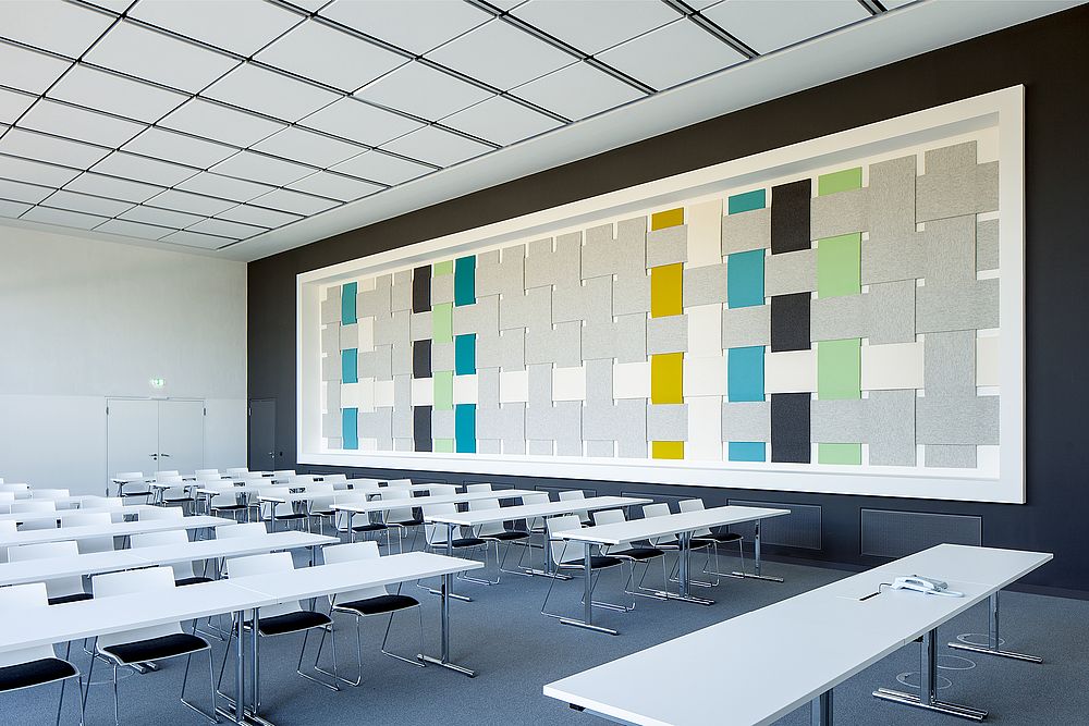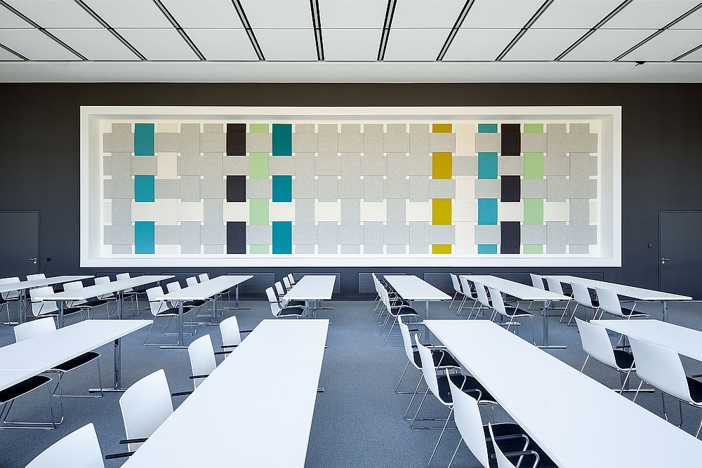 Unser Gebäude selbst ist stark textilgeprägt, natürlich innen, aber auch außen. Die Ziegelfassade stellt ein Tuch dar, das über das Gebäude geworfen wurde. Sie ist einzigartig und zieht regelmäßig interessierte Architektengruppen und Studierende an. Wo, wie und mit Unterstützung welcher Mitgliedsunternehmen wir textiles Bauen in unserem Gebäude umgesetzt haben, zeigen wir in einer kleinen Broschüre.