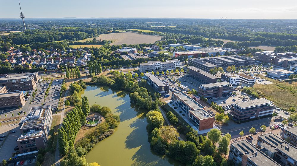 In Münster befindet sich unser Gebäude auf er Loddenheide, einem über Jahrhunderte militärisch genutzten Gelände, das heute Gewerbegebiet ist. An die militärische Nutzung erinnert der Friedenspark und die Benennung der Straßen nach Friedensnobelpreisträgern.